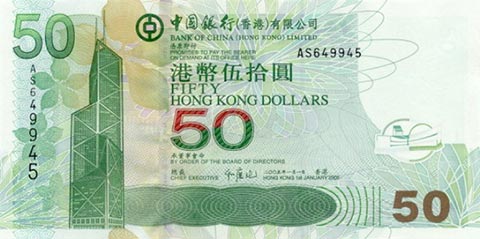 Гонконгский доллар. Купюра номиналом в 50 HKD, аверс.