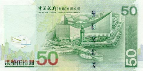 Гонконгский доллар. Купюра номиналом в 50 HKD, реверс.