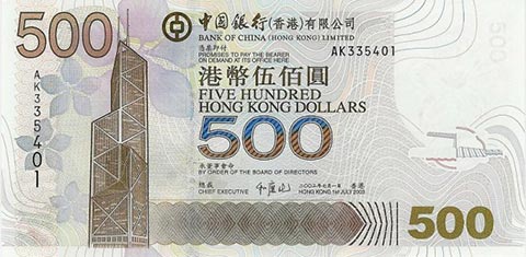 Гонконгский доллар. Купюра номиналом в 500 HKD, аверс.