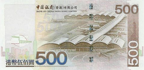 Гонконгский доллар. Купюра номиналом в 500 HKD, реверс.