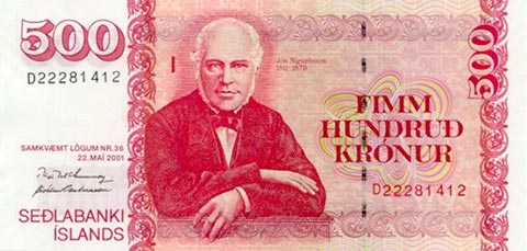 Исландская крона. Купюра номиналом в 500 ISK, аверс.