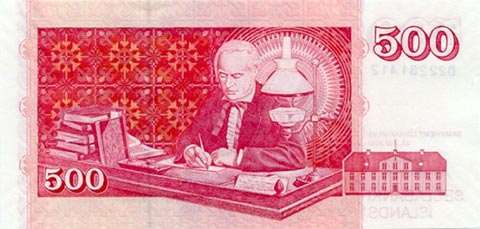Исландская крона. Купюра номиналом в 500 ISK, реверс.