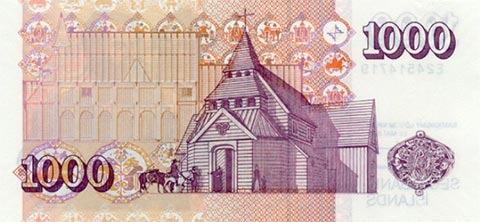 Исландская крона. Купюра номиналом в 1000 ISK, реверс.