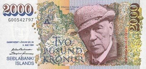 Исландская крона. Купюра номиналом в 2000 ISK, аверс.