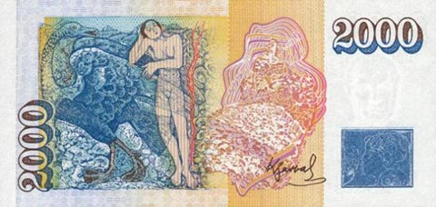 Исландская крона. Купюра номиналом в 2000 ISK, реверс.