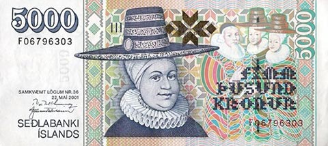 Исландская крона. Купюра номиналом в 5000 ISK, аверс.