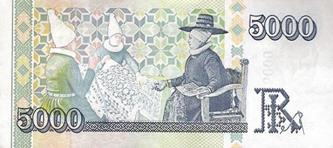 Исландская крона. Купюра номиналом в 5000 ISK, реверс.