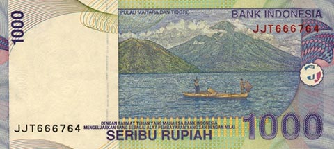 Индонезийская рупия. Купюра номиналом в 1000 IDR, реверс.
