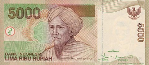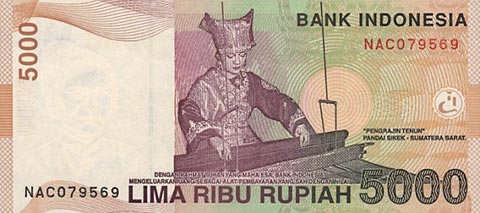 Индонезийская рупия. Купюра номиналом в 5000 IDR, аверс.