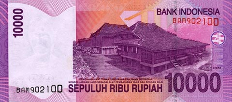 Индонезийская рупия. Купюра номиналом в 10000 IDR, реверс.