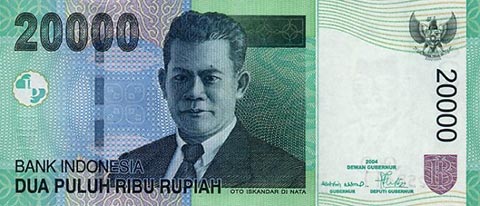 Индонезийская рупия. Купюра номиналом в 20000 IDR, аверс.
