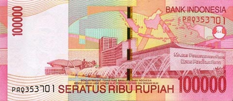 Индонезийская рупия. Купюра номиналом в 100000 IDR, реверс.