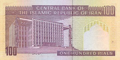 Иранский риал. Купюра номиналом в 100 IRR, реверс.