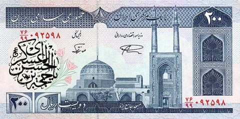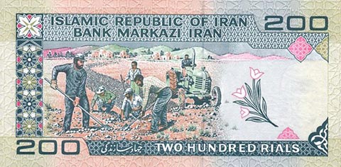 Иранский риал. Купюра номиналом в 200 IRR, реверс.