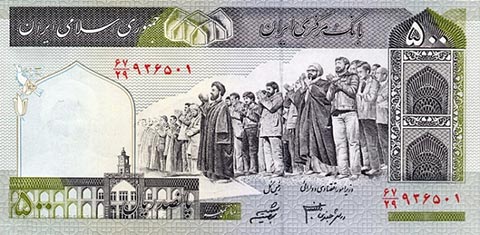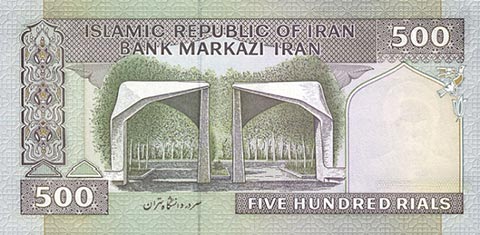 Иранский риал. Купюра номиналом в 500 IRR, реверс.