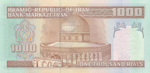 Иранский риал. Купюра номиналом в 1000 IRR, реверс.