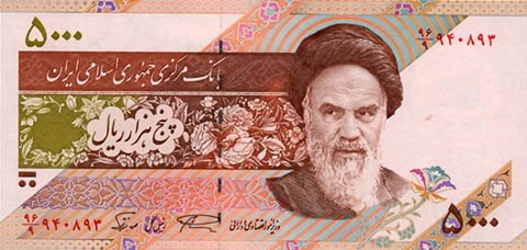 Иранский риал. Купюра номиналом в 5000 IRR, аверс.