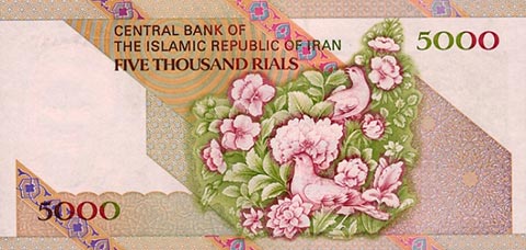 Иранский риал. Купюра номиналом в 5000 IRR, реверс.