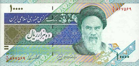 Иранский риал. Купюра номиналом в 10000 IRR, аверс.