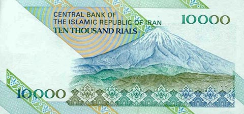 Иранский риал. Купюра номиналом в 10000 IRR, реверс.