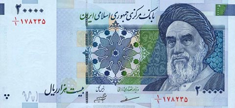 Иранский риал. Купюра номиналом в 20000 IRR, аверс.