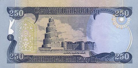 Иракский динар. Купюра номиналом в 250 IQD, реверс.