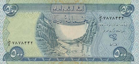 Иракский динар. Купюра номиналом в 50 IQD, реверс.
