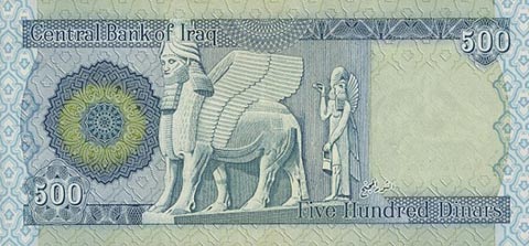 Иракский динар. Купюра номиналом в 500 IQD, реверс.
