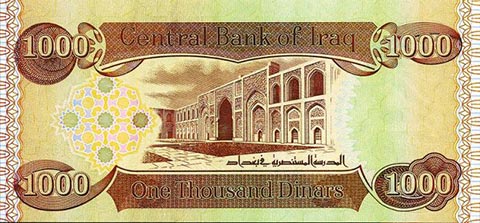 Иракский динар. Купюра номиналом в 1000 IQD, реверс.
