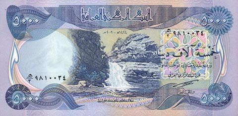 Иракский динар. Купюра номиналом в 5000 IQD, реверс.