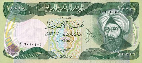 Иракский динар. Купюра номиналом в 10000 IQD, аверс.