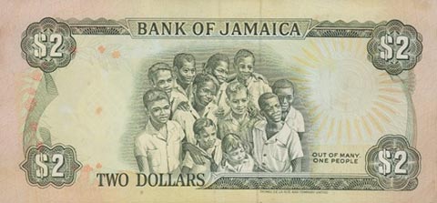 Ямайский доллар. Купюра номиналом в 2 JMD, реверс.