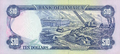 Ямайский доллар. Купюра номиналом в 10 JMD, реверс.