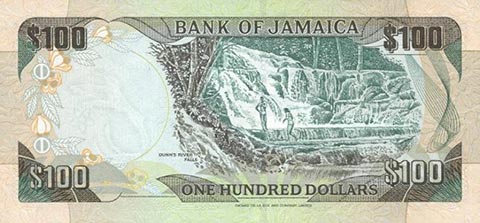 Ямайский доллар. Купюра номиналом в 100 JMD, реверс.
