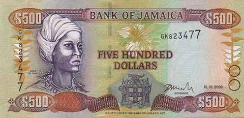 Ямайский доллар. Купюра номиналом в 500 JMD, аверс.