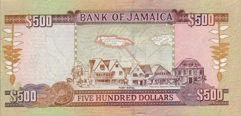 Ямайский доллар. Купюра номиналом в 500 JMD, реверс.