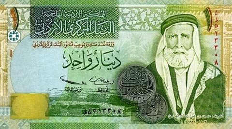 Иорданский динар. Купюра номиналом в 1 JOD, аверс.