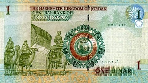 Иорданский динар. Купюра номиналом в 1 JOD, реверс.