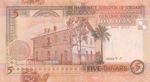 Иорданский динар. Купюра номиналом в 5 JOD, реверс.