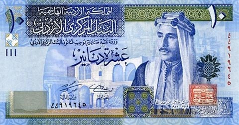 Иорданский динар. Купюра номиналом в 10 JOD, аверс.