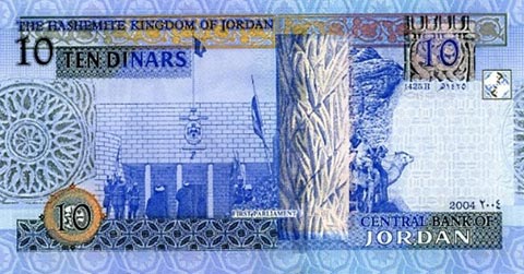 Иорданский динар. Купюра номиналом в 10 JOD, реверс.