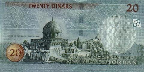 Иорданский динар. Купюра номиналом в 20 JOD, реверс.