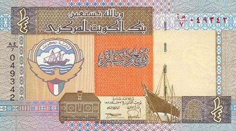 Кувейтский динар. Купюра номиналом в 0.25 KWD, аверс.