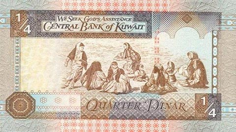 Кувейтский динар. Купюра номиналом в 0.25 KWD, реверс.