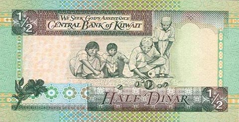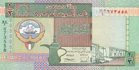 Кувейтский динар. Купюра номиналом в 0.5 KWD, реверс.