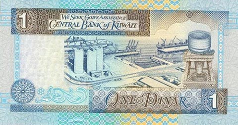 Кувейтский динар. Купюра номиналом в 1 KWD, реверс.