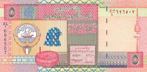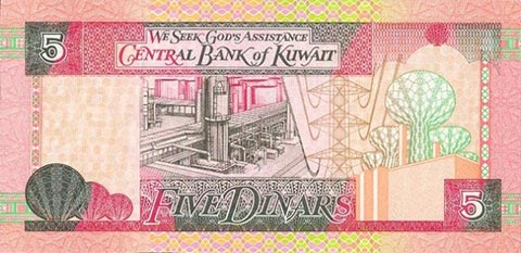 Кувейтский динар. Купюра номиналом в 5 KWD, реверс.