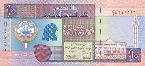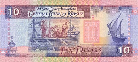 Кувейтский динар. Купюра номиналом в 10 KWD, реверс.