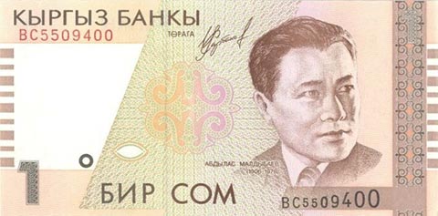 Киргизский сом. Купюра номиналом в 1 KGS, аверс.