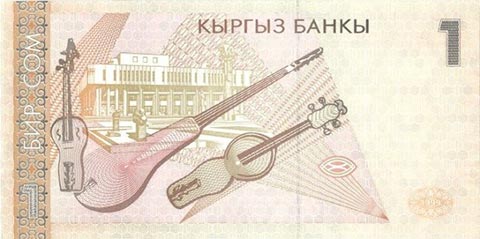 Киргизский сом. Купюра номиналом в 1 KGS, реверс.